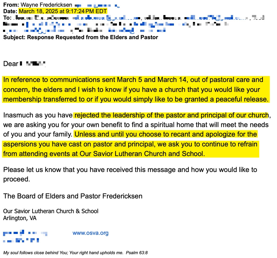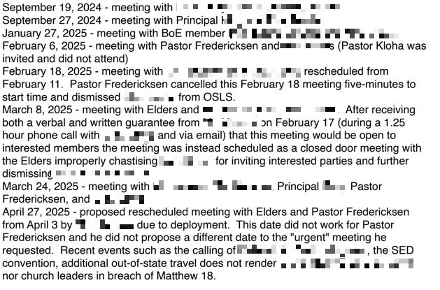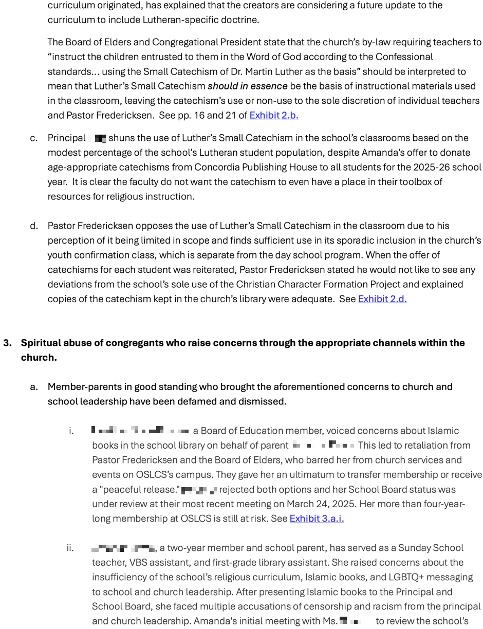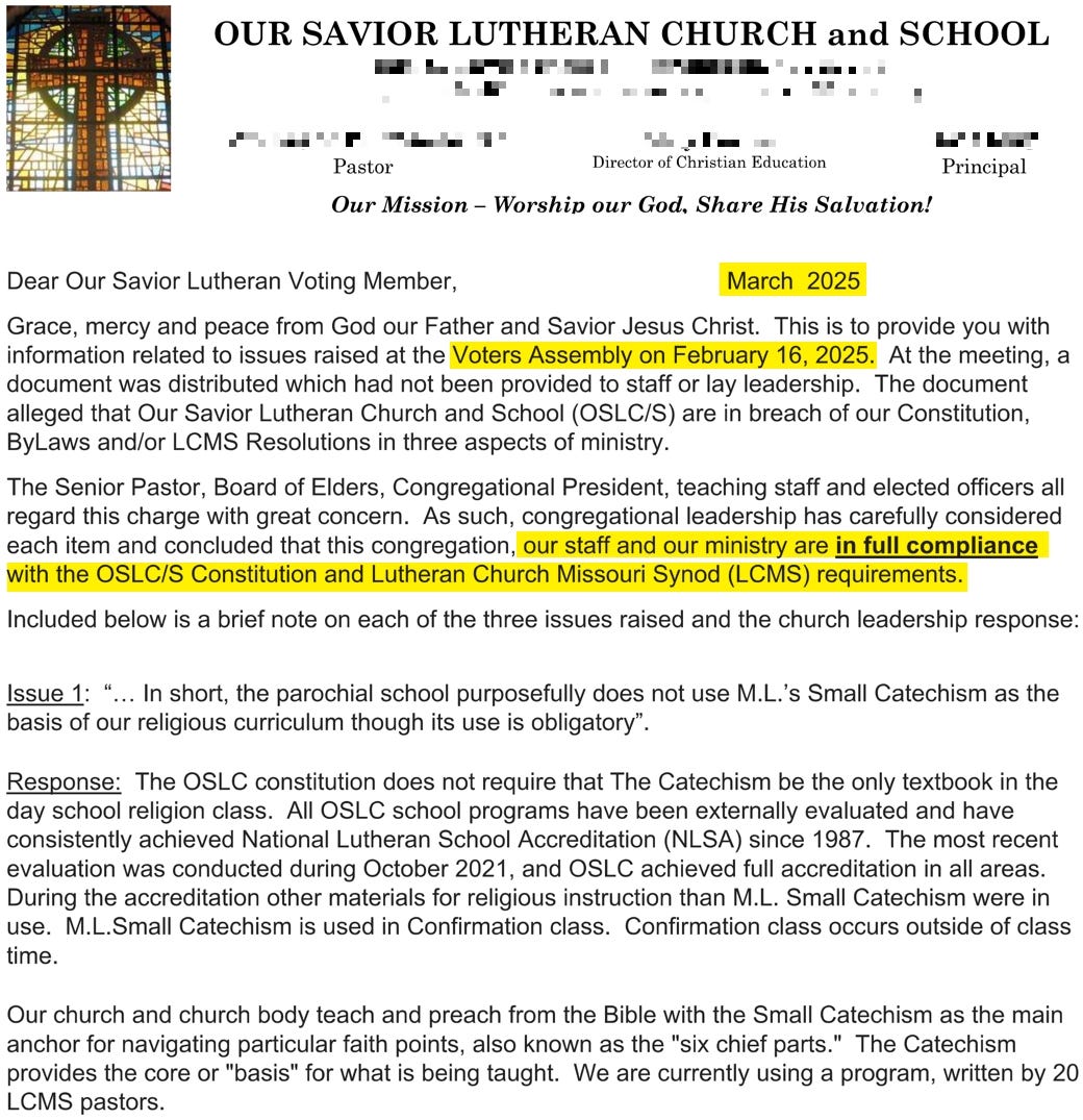 OSLCS’s pastor and congregation exhibit a pattern of public renunciation of the Christian faith akin to that of the ELCA and other mainline churches. It defies explanation that consequential ecclesiastical discipline has yet to be achieved, or that this congregation was ever allowed to enter this heretical state.