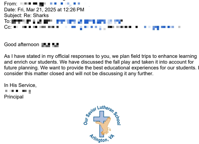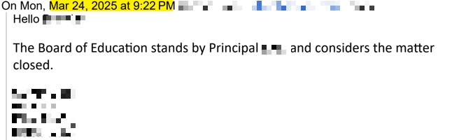 DP Harmon copied President Harrison on his rapid decision - “the matter is considered resolved” on June 12, 2025 (see above).