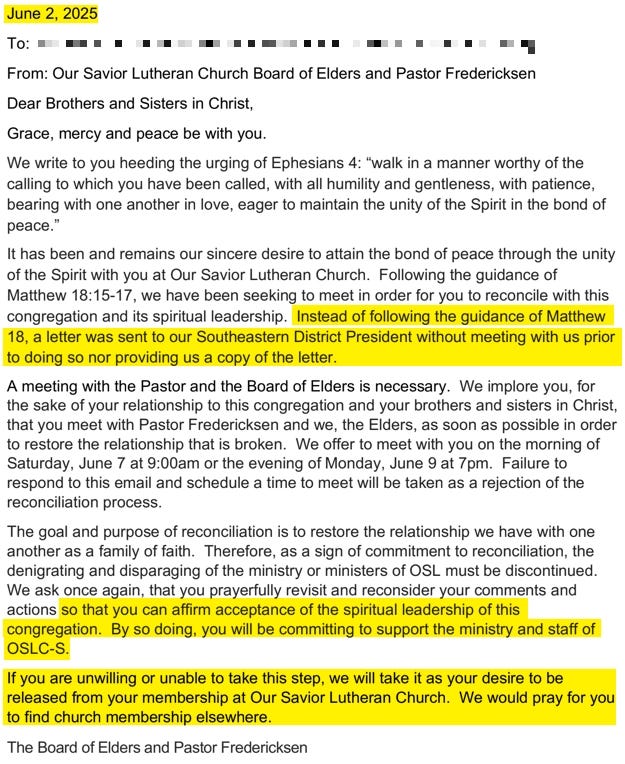It is evident from the correspondence that neither the church nor the district followed the Synod’s prescribed processes for reconciliation.