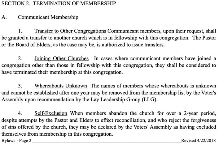 It seems congregational leadership may have relied on conflating I, §2.A.6 with a portion of Article I, §2.B.4: