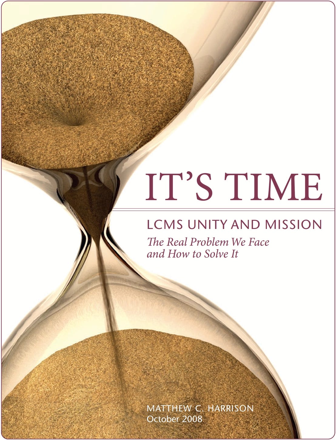 Harrison, Matthew C. It’s Time: LCMS Unity and Mission — The Real Problem We Face and How to Solve It. October 2008. Submitted to the Board of Spiritual Care and Supervision of the Southern Illinois District during the Blue Ribbon Task Force on Synod Structure and Governance period. Distributed freely; the document states “This document may be reproduced and distributed freely.” Held at the Concordia Historical Institute, St. Louis. All quotations from Harrison’s 2008 document in this article — including those marked with † — are drawn from this source.