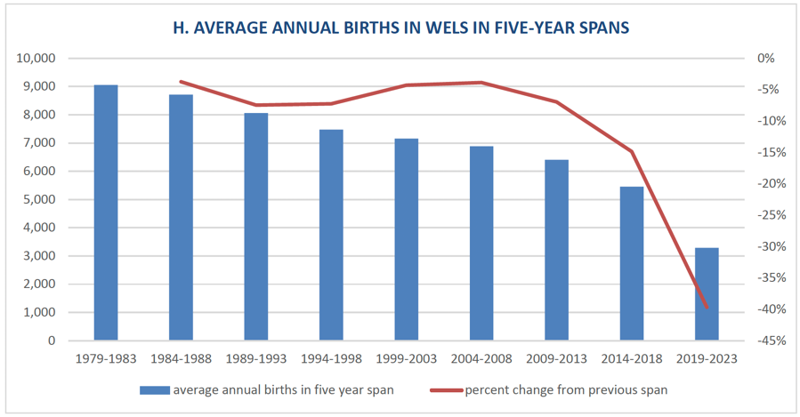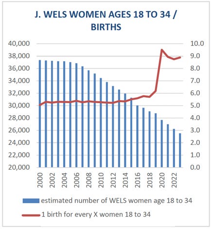 From 2018 to 2019, there was a statistically anomalous change in the WELS birth rates that warrants further investigation because it could be a precursor “signal” to the unprecedented collapse in 2020 that still largely persists.