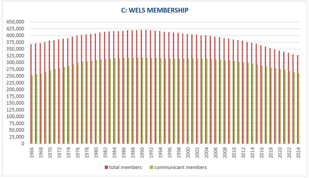 I have access to the WELS data by congregation from the 1990s through 2024. The change in 2020 was a shift from reporting child baptisms to reporting births. Child baptisms fell 37% from 2000-2019. In 2020, the Synod separated out the 1,060 children of adult confirmations/professions in another category. There's still ~750 missing child baptisms not accounted for by the change in methodology.