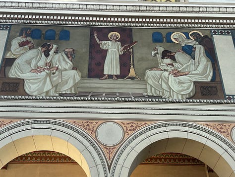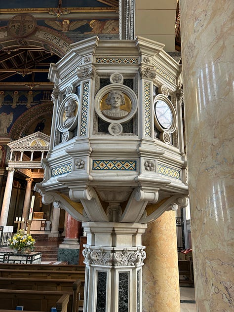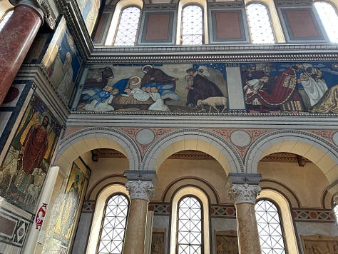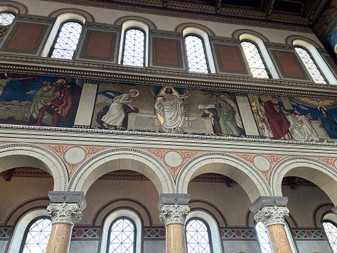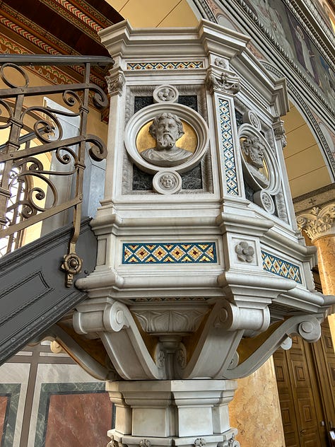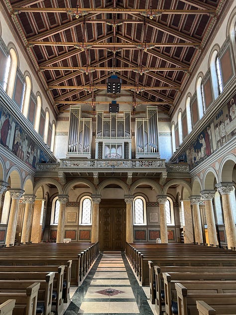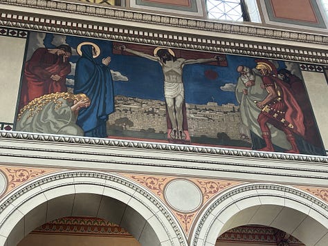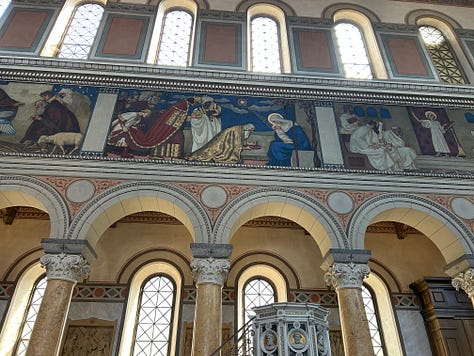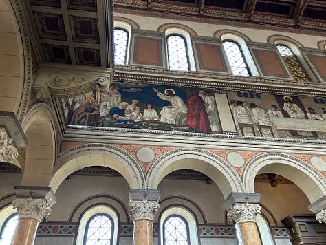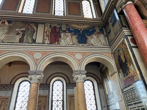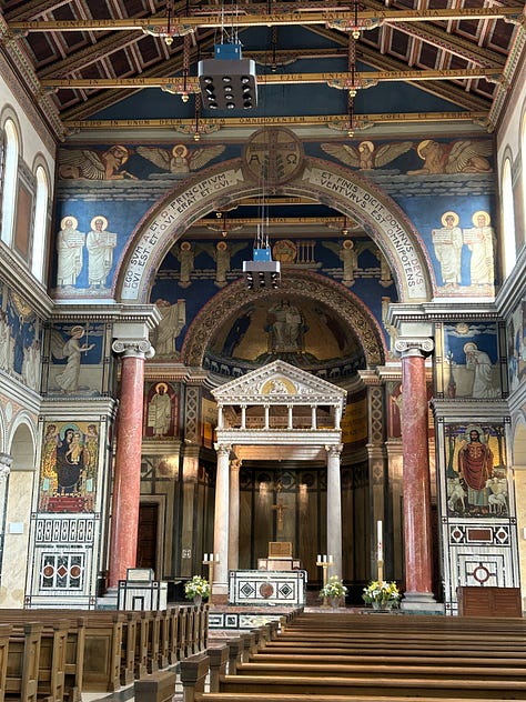 These beauties are all in the tourist district and probably get hundreds of visitors a day. But high above the bustle of the city, on a quieter road, lies my very favorite church. Few tourists know of it, as it sits as a silent witness to a disinterested people. The Liebfrauenkirche is a 19th century delight. I visit there to read my bible and marvel at the murals. My photos don’t do this beautiful church justice. My hope is that someday we will have the ability to make our churches as beautiful as these, while keeping our lights shining and our wicks trimmed.